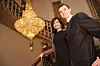 Anna Litwinski og Pawel Prokuski ved en av de mange lyskronene på hotellet. (Foto: Morten Holt)