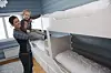 Julie Dahl sammen med sønnen Sebastian i et av soverommene på gården. (Foto: Morten Holt)