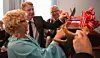 Elgstuas første eier, Berit Hellwege, klipper snoren. I midten administrerende direktør for Rica Elgstua, John Tømte, og til høyre Elverums ordfører Erik Hanstad.