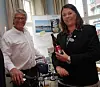 Trygve Norman fra Finse 1222 og Mette Bakketun fra Fretheim Hotel i Flåm promoterte Rallarvegen. (Foto: Morten Holt)