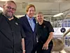 Sjefsbrygger ved Nøgne Ø, Kjetil Jikiun (fra venstre), administrerende direktør i Hansa Borg Bryggerier, Lars A. Midtgaard og daglig leder Nøgne Ø, Tore Nybø. (Foto: Nøgne Ø/Hansa Borg Bryggerier AS)