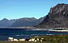 Sauene i nord beiter i et krevende kyst- og fjellterreng som gir saftig og mørt kjøtt. Her fra Engeløya i Steigen med Lofotveggen i bakgrunnen. (Foto: Morten Holt)