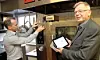 Brede Hemma klistrer på etiketten på utstyret, mens Arne Dalseng følger med på sin iPad. (Foto: Morten Holt)