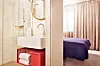Det er arkitektbyrået Koncept Stockholm som står bak interiør og design. Prosjektleder Hanna Kucera Wengelin uttaler: – Rommet skal være en rolig og avslappende sted å være, samtidig som vi gjennom innslag inne på rommene med moderne tekniske hjelpemidler og utstyr, skaper en aktiv energi.