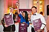 Seierspallen i Absolute Invite i 2012. Vinneren Monica Berg i midten, Jesper Høst til venstre og Johan Bengtsson til høyre.