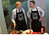 Sindre Finnes (til venstre) og Frank Bakke-Jensen steker biff for Kirkens Bymisjon kjøkkenet sammen med kjøkkensjef på Aksept, Harry Kristoffersen. (Foto: Svein-Erik Eide)