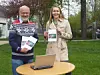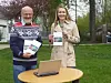 Prosjektleder Messer Tereza Kjos ved Norsk-Tysk Handelskammer i Oslo trekker vinnerne i konkurransen under Grüne Woche i Berlin sammen med markeds- og mediesjef Ole Jonny Trangsrud fra Hanen. (Foto: Felix Reimann, Norsk-Tysk Handelskammer, Oslo)