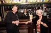 Baren er et sentralt område på hotellet. Til venstre Lars Nibstad, servitør Isabell Brandt og Gerd Nibstad. (Foto: Morten Holt)