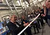 Torkjell Berulfsen klipper snoren under åpningen av Røros bryggeri og mineralvannfabrikk. (Foto: Sigrid Jansrud, Røros Næringshage)