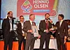 Hennig Olsen ble «Årets leverandør» innenfor servicehandel. Fra venstre Trond L. Wøien, Harald Alveid (NorgesGruppen), Leif Tjønsø, Jørn Veiset og konferansierNils-Ingar Aadne.