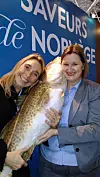 Tone Collomb-Rey (til venstre) og Eidis W Biehler fra Saveurs de Norvège holder i torsken i Lyon.