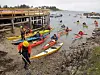 Ivrige kajakkpadlere fra Trondheim kajakkklubb på tur ut fra Manshausen i sommer. (Foto: Manshausen)