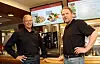 Daglig leder og innehaver av Rustad Kafé på Sokna, Håvard Rustad (til høyre) sammen med daglig leder for Utvalgte Spisesteder, Per Lauritz Lien. (Foto: Morten Holt)