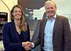 Markedsdirektør i Scandic Hotels, Tine Birkeland, og leder for Skiskytter-VM Oslo 2016, Per Bergerud, etter å ha signert avtalen som gjør Scandic Hotels til samarbeidspartner.