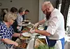 Stian Olai Hansen og Berit Mo sørget for brød- og ostserveringen da Skaslien inbød til kickoff for «Fra jord til bord» til Solør. (Foto: Morten Holt)