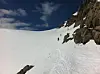Helt oppunder Rasletind på 2105 meter i mai! Aller bakerst i bildet skimtes Knutsholstinden (2341 moh). Det pyramideformede fjellet var lenge regnet som Norges høyeste - før måleinstrumentene kom! (Foto: Morten Holt)