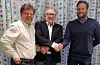 Eier av Berg & Dahl AS, Knut Berg (fra venstre), daglig leder i Storkjøkkensenteret AS, Lars Harby og salgssjef i Berg & Dahl AS, Gunvald Johansen.