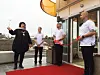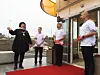 Ordfører Ihle Steen fikk æren av å klippe snoren da Max åpnet sin nyeste restaurant i Ringsaker i dag. Snorholdere var direktør og visedirektør i Max, brødrene Richard og Christoffer Bergfors.