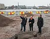 Arthur Buchardt, Torgeir Silseth og arkitekt Aki Davidsson på byggeplassen der nye Clarion Hotel Helsinki skal bygges.