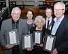 Fra venstre Hans Eide (daglig leder butikk), Marit Jerven (markedsdirektør, KSL Matmerk) Kristoffer Eide (pølsemaker) Ruth Eide (gründer) Jens Øystein Eide (daglig leder) .