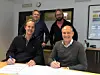 Fra venstre: Ola Holter og Lars Kristian Gaustad (bak) fra Consto Eide AS, sammen med byggherre, Roger Adolfsen, og prosjektleder Arne Henry Sørra.