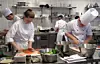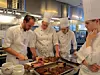 Philip, Markus og Øyvind følger nøye med på mesterkokk Ørjan Johannessen når anderetten tilberedes. (Foto: Janne Sandvik)