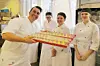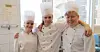 Pynten til desserten er klar. Tine-konditor Bernhard Azinger med de lærevillige tilskuerne Nina, Suzanne og Elisabeth. (Foto: Janne Sandvik)