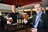 F&B-manager Steinar Kokaas (til høyre) og barsjef Thomas Floden på Clarion Hotel & Congress Oslo Airport med det nye hotell-ølet.