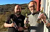 Odd J. Nelvik (t.h.) fra Det Norske Brenneri og Pål Andvord fra Beitostølen Barcraft er stolt over å ha utviklet en rakfiskakevitt med lokale urter. Nå er de 1399 nummererte flaskene å finne på Svingen Pub og Cafè - og selvsagt på Vinmonopolet.