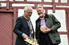 Alna-entusiast og senterdirektør Hans Georg Helberg (til venstre) sammen med akevittekspert Halvor Heuch på Tveten gård.