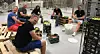 De ansatte i gang med skrelling av fem kilo limeskall. (Foto: Nøgne Ø)