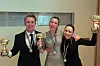 Servitør-lærlingene Amalie Lerbrukt og Kristian Brestrup med lagleder Mari Båserud etter sølv i Nordisk mestskap på Island i helga.