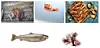 Råvarene i Årets kokk 2017. (Foto: Tom Haga (reker), Andreas Lindlahr (kongekrabbe), Synøve Dreyer (sjøkreps), Lofoten seaweed (trøffeltang) og Norges Sjømatråd (ishavsrøye)).