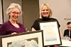 Ellen Marie Hansteensen (til venstre) fikk prisen overlevert av fylkesråd Mona Fagerås. (Foto: Susanne Forsland)