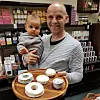 Bo Jensen med fem av de seks ostene han skal delta med i Lyon, og sønnen Noah, som ble født i fjor høst. (Foto: Privat)