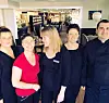 Sentrale personer på Hotell Frøya. Fra venstre Valborg Bekken (daglig leder), Doreen Alperstedt-Spate (husøkonom), Lena Fillingsnes (F&B-manager), Ann Christin Gulbransen (bookingsjef) og Jevegeni Sankovits (kjøkkensjef). (Foto: Hotell Frøya)