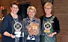 Nina Sundqvist hos Matmerk (midten) delte ut Spesialitet-merket til Gransjøberget Sæter og Viltkjøkken. Til høyre daglig leder Marianne Wimmer og til venstre pølsemaker Hallgerd Tronsmoen. (Foto: Solrunn Nordlien)
