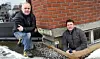 Andreas Aanerud (til venstre) og Ole Einar Hagen viser skallsikringssystemet utenfor lokalene til Aanerud bakeri. (Foto: Morten Holt)