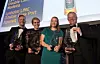 Anne Gude (Account Manager DFTR International Sales) og Kristina Gjestland (Product Developer R&D Spirits), mottar priser av Justin Smith (Publisher, Drinks International) og Ian Harris (CEO, Wine & Spirit Education Trust). (Foto: Grant Pritchard/Arcus)