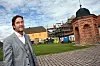 Arnt R. Mikalsen er en av drivkreftene bak hotellsatsingen på Kongsvinger Festning. I bakgrunnen byggearbeidene i kasernen, som nå blir hotell. (Foto; Morten Holt)