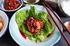 Det er vanlig å pakke ribbestykker i en wrap (kalt ssam) laget av salat- og perillablader.