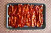 Fremgangsmåte: Skjær ribben i tynne skiver (ca 5 mm tykke). Bland sammen ingrediensene i marinaden og vend ribbestykkene i marinaden. La stå tildekket i kjøleskap i en times tid eller mer.