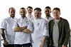 De fem deltakerne i Årets kokk 2017 sammen med Gunnar Hvarnes (til høyre). Fra venstre Christian A. Pettersen, Filip A. Bendi, Rasmus Johnsen Skoglund, Geir Magnus Svae og Øyvind Bøe Dalelv. (Foto: Linda Wiken)