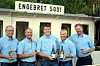 Noen av medlemmene med de nye produktene ved Ørje sluser. Fra venstre Morten Jaavall, Tor Anders Høgaas, Thomas Furulund, Espen Jaavall og Nils Ivar Krog Enger. (Foto: Aursmark Edle Dråper)