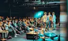 Stormkast-gutta Per Valebrokk og Petter A. Stordalen (også eier av Nordic Choice Hotels) på scenen med gjester. (Foto: Clarion Hotel)