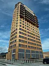 Snart skal Mjøstårnet kombinere ned mot en times biltur fra Gardermoen med 400 meter tunnel rett til Brumunddal stasjon og egen Skibladner-brygge. (Foto: Georg Mathisen)