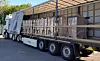 En bil lastes med 22 500 liter drikkevann, klar til å bli sendt fra Brevik til Ukraina. (Foto: Petter Bjelland)