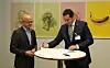 Direktør for mat og drikke i Scandic Hotels Norge, Morten Malting signerer avtalen med klima og miljøminister Vidar Helgesen. (Foto: Scandic Hotels).