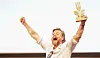 Her ser du en kjempeglad Henrik Lund, lederen for Naturli i Danmark. Naturli gikk av med seieren for årets produkt i 2021 for iskremen, «Dark and Creamy». Bildet er tatt under Planteprisutdelingen i Danmark. (Foto: PlanteVækst, Danmark)