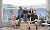 Ordfører i Åfjord kommune Vibeke Stjern (fra venstre) og kultursjef Jan Ove Berdahl gratulerer Ingrid Langklopp, Nicola Meola og Genny Bernardi som vinner av «Årets bakeri 2022». (Foto: Jon-Are Berg-Jacobsen, Vest Vind Media)